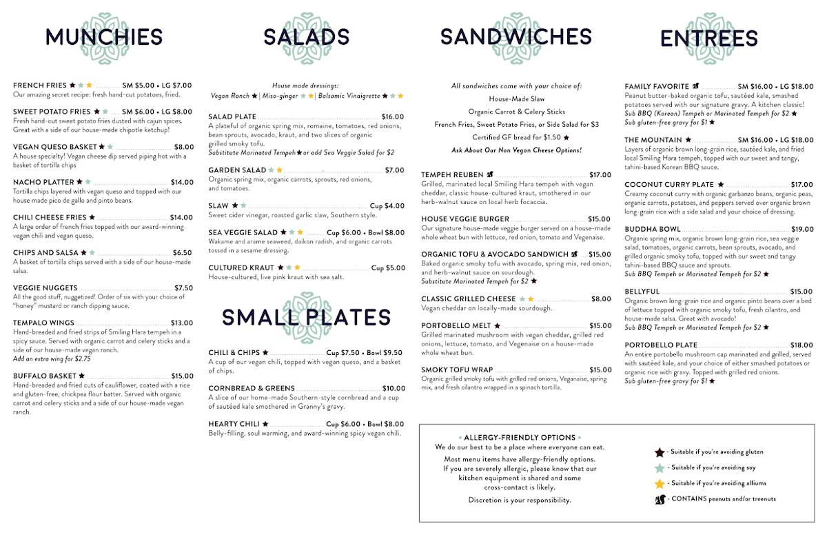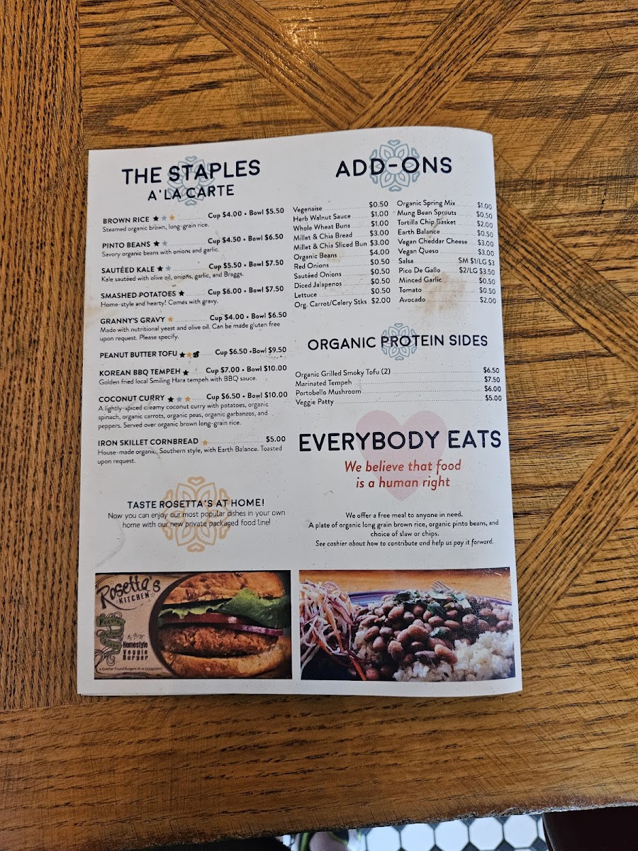 Welcome to Rosetta's Kitchen, a vibrant vegan eatery located in downtown Asheville, NC. Nestled on 68 N Lexington Ave, this hidden gem is renowned for its homestyle comfort food made from fresh, organic ingredients. The menu showcases a variety of dishes that cater to all palates, featuring highlights like the Smoky Tofu and Buddha Bowl with flavorful tempeh.
